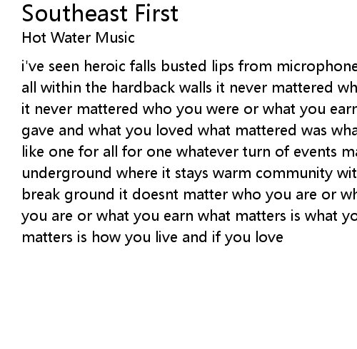 i've seen heroic falls busted lips from microphone brawls angelic songs sung by all within the hardback walls it never mattered who you were or where you worked it never mattered who you were or what you earned what mattered was what you gave and what you loved what mattered was what you gave and what was learned like one for all for one whatever turn of events may come we all live underground where it stays warm community with commin sounds we work together to break ground it doesnt matter who you are or where you work it doesnt matter who you are or what you earn what matters is what you give and what you love what matters is how you live and if you love |