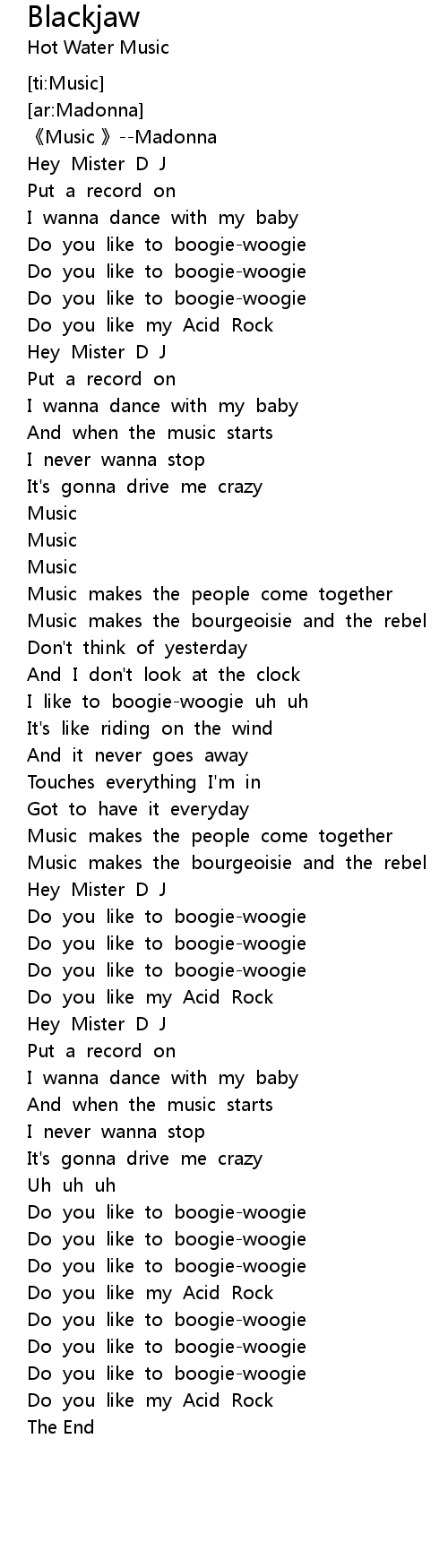 | [00:20.917] | Do you like to boogiewoogie |