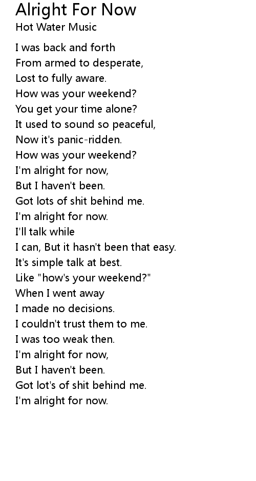 I'm alright for now, |