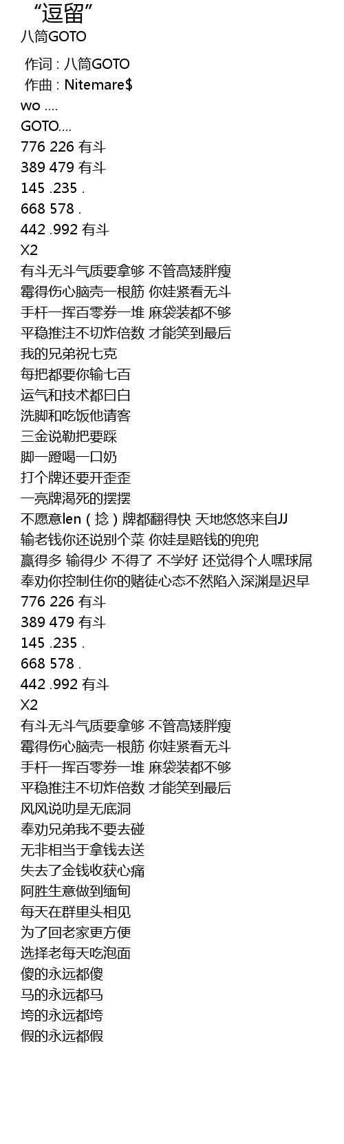 | [01:23.559] | 赢得多 输得少 不得了 不学好 还觉得个人嘿球屌 |