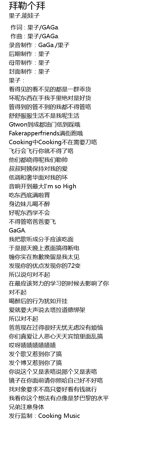 | [00:01.000] | zuò qǔ : guǒ zǐ GAGa. |