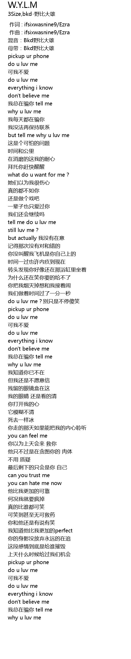 | [01:44.071] | do u luv me? bie zhi shi bu ting sha xiao |