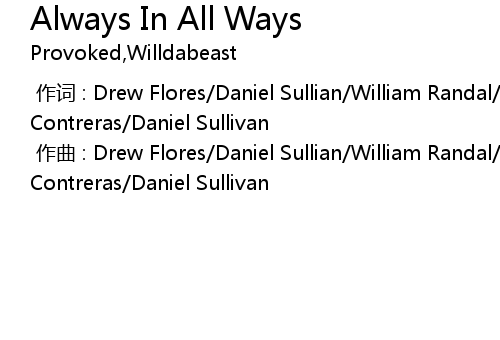 | [00:00.000] | zuo ci : Drew Flores Daniel Sullian William Randal Christopher Contreras Daniel Sullivan |