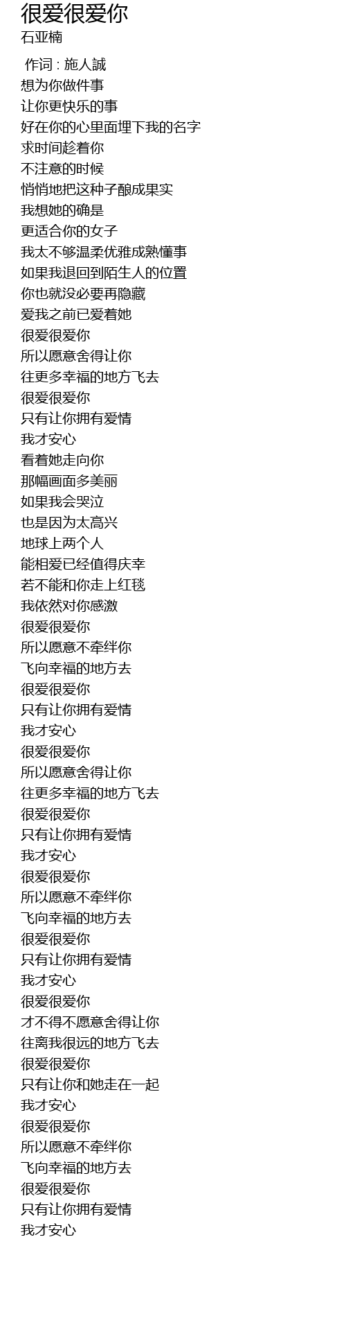 | Song | 很爱很爱你 |