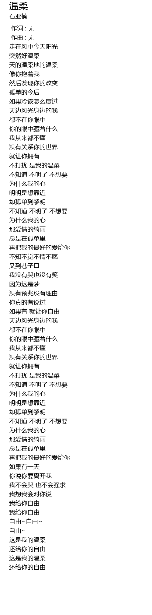 | [01:13.927] | bu da rao shi wo de wen rou |