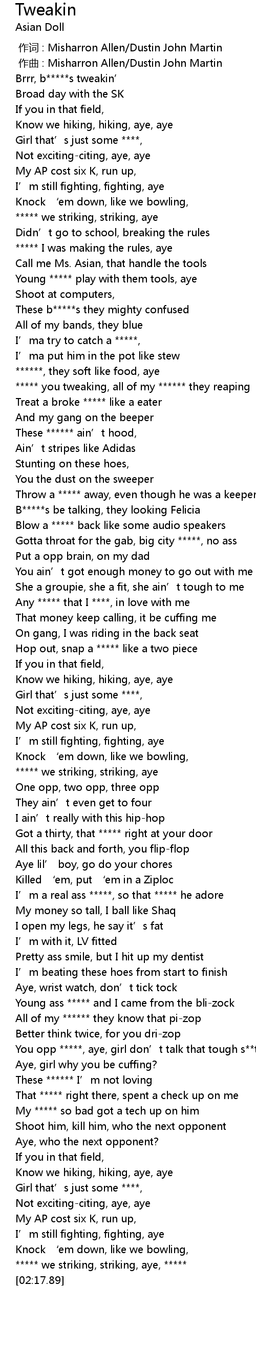 | [00:03.12] | Brrr, b*****s tweakin’ |