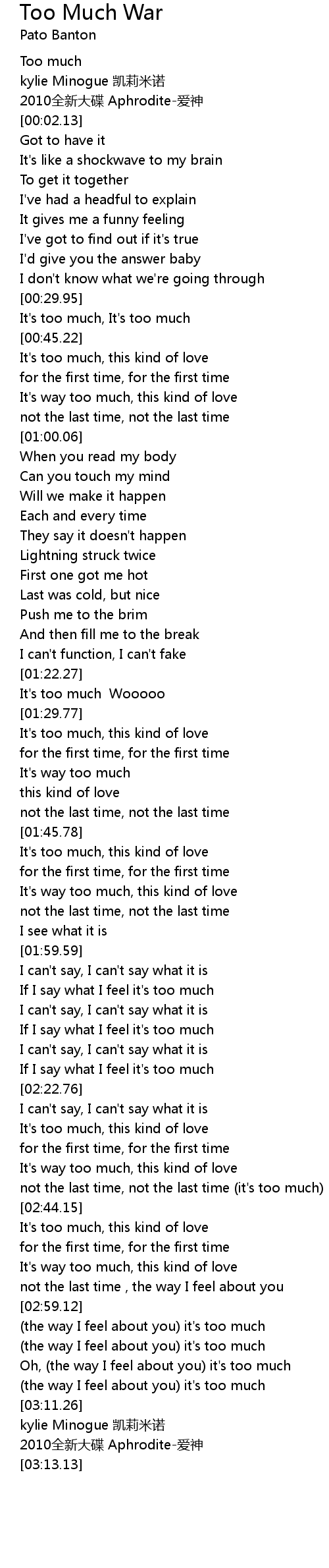 | [00:00.88] | Too much |