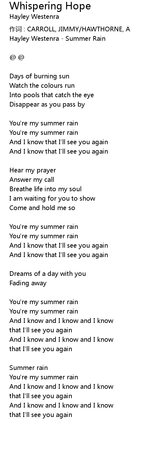 | Hayley Westenra Summer Rain | |