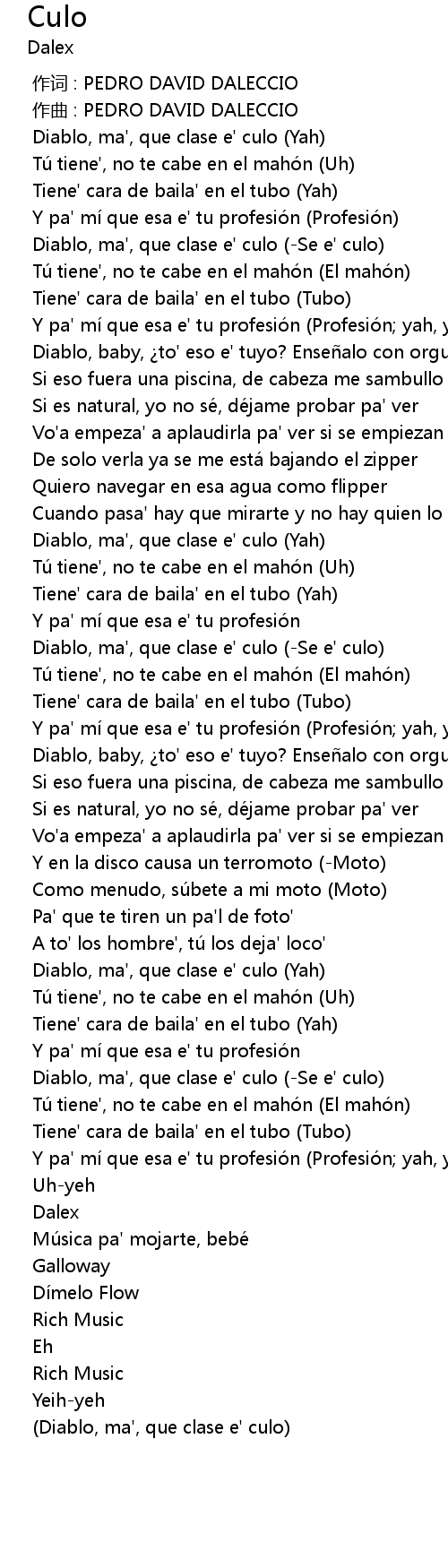 | [00:26.649] | Diablo, ma', que clase e' culo Se e' culo |