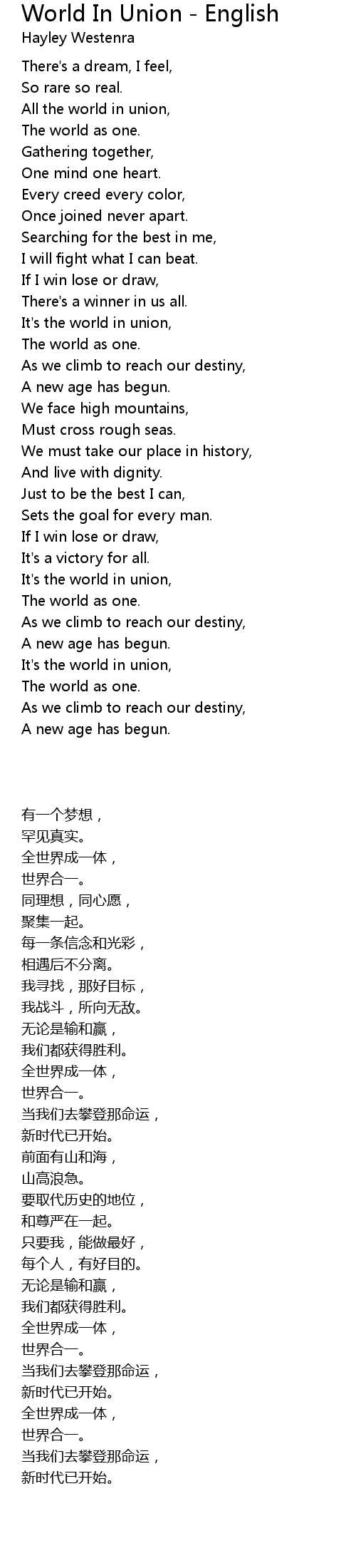 It's the world in union, |