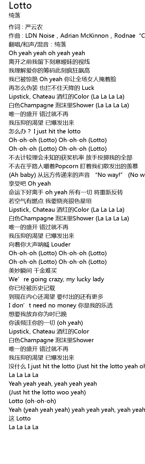 | mei shen me I just hit the lotto Just hit the lotto yeah oh | |