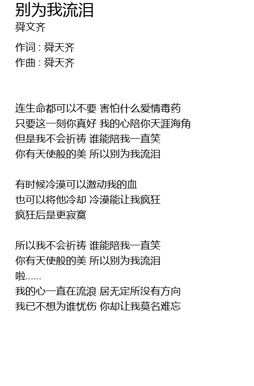 | nǐ yǒu tiān shǐ bān de měi suǒ yǐ bié wèi wǒ liú lèi | |