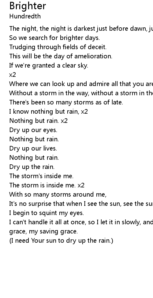 (I need Your sun to dry up the rain.) |