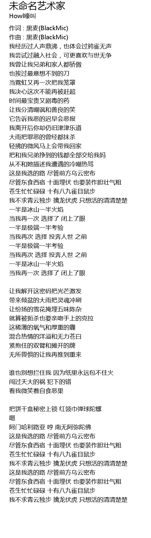 | 作词 : 黑麦(BlackMic) | |