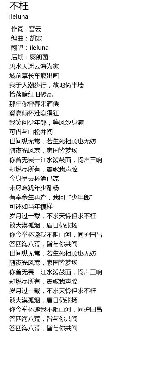 | [00:04.000] | 翻唱:ileluna |