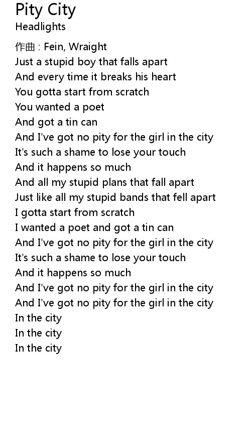 | And I' ve got no pity for the girl in the city | |