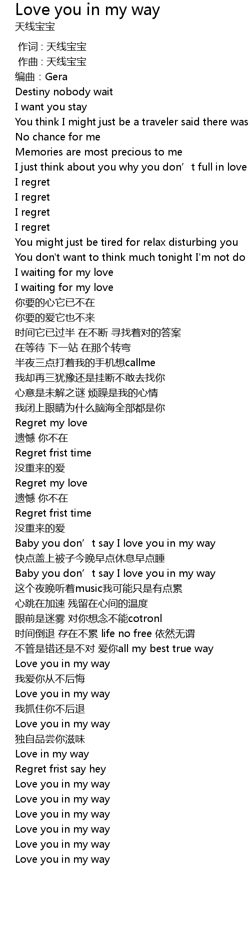 | [01:40.931] | Baby you don' t say I love you in my way |