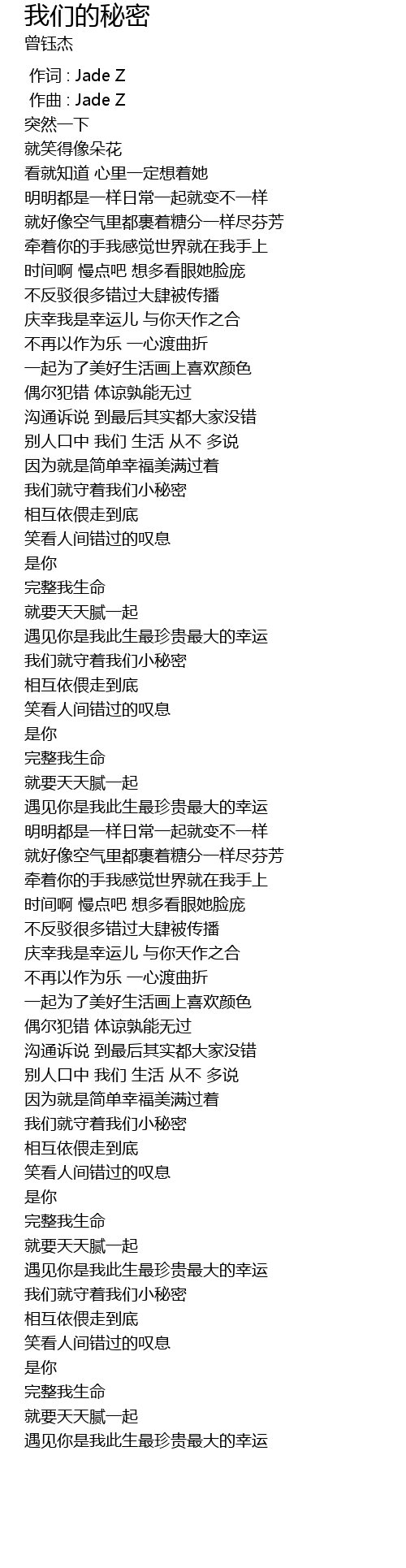 | [02:49.800] | wǒ men jiù shǒu zhe wǒ men xiǎo mì mì |