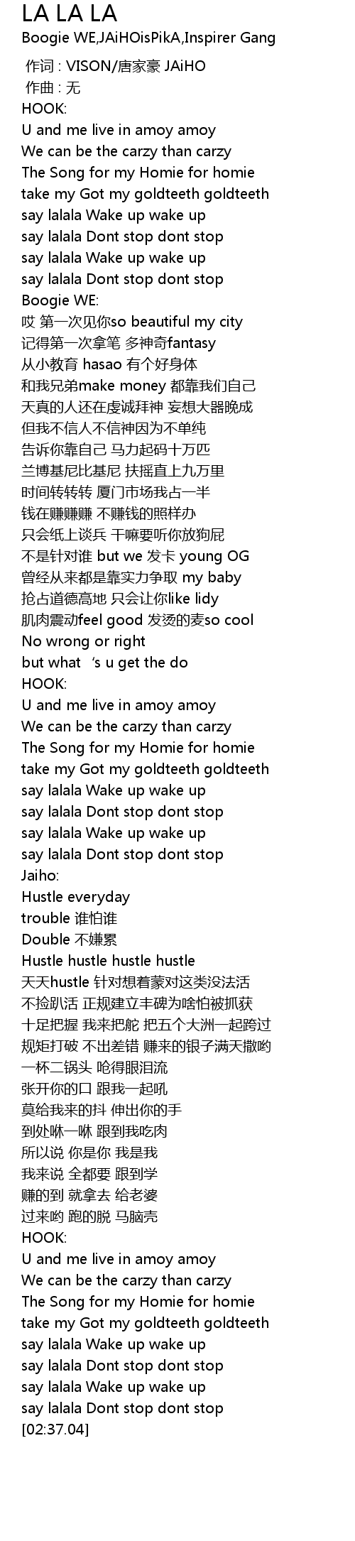 | [02:26.39] | say lalala Dont stop dont stop |