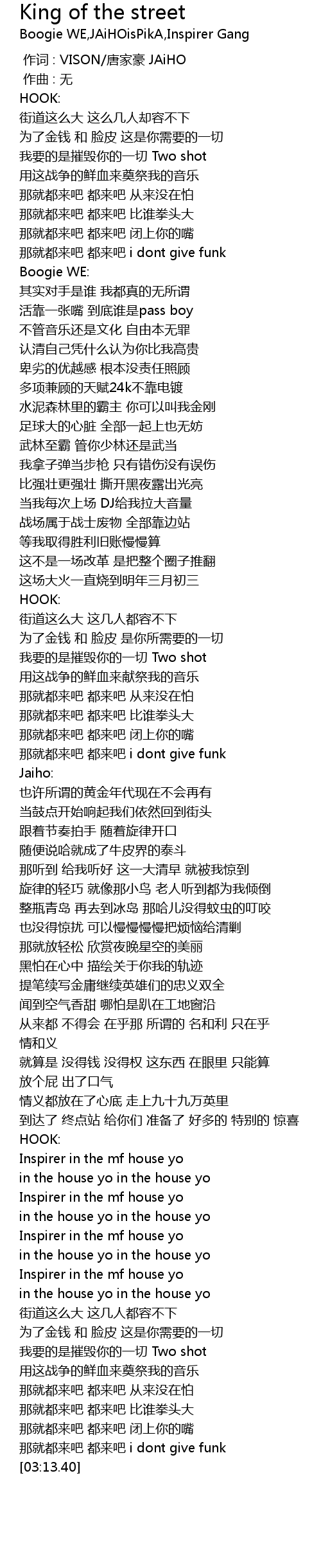 | [01:44.58] | 当鼓点开始响起我们依然回到街头 |