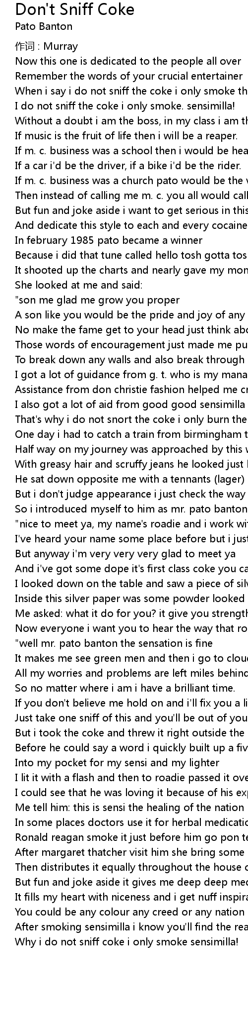 | I do not sniff the coke i only smoke. sensimilla! | |