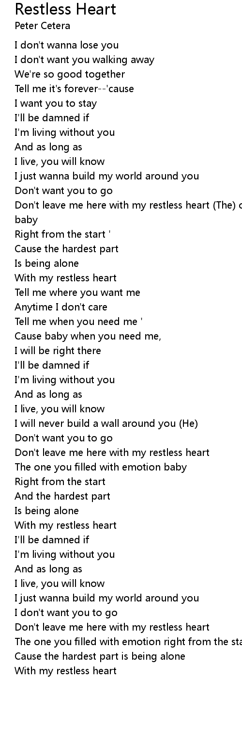 Don't leave me here with my restless heart (The) one you filled with emotion baby