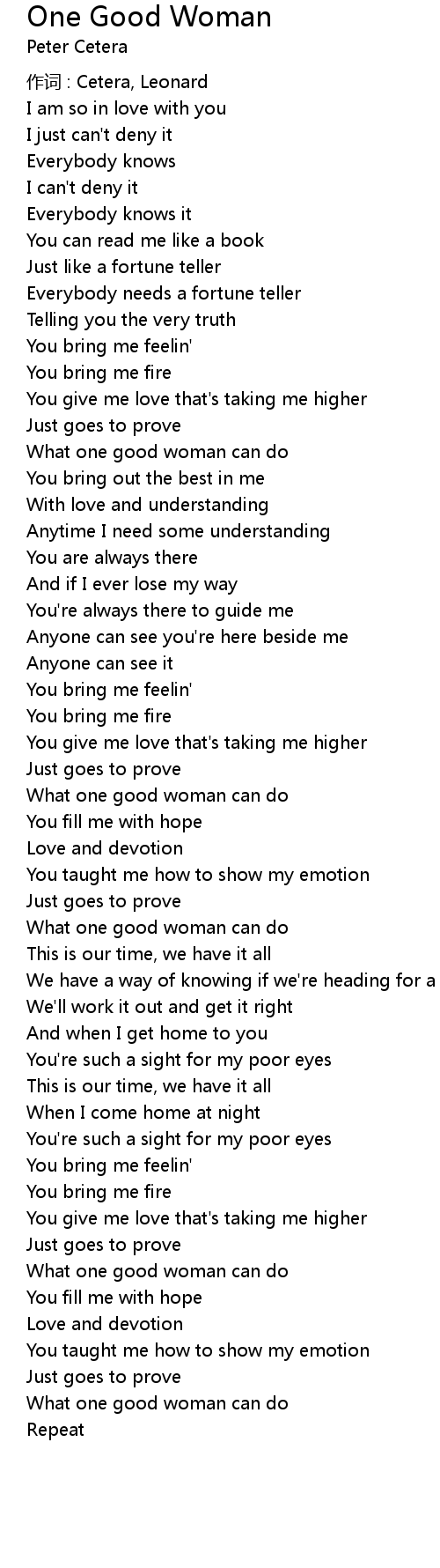 | Song | One Good Woman |