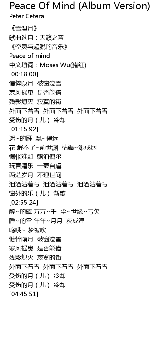 | [00:16.30] | 中文填词:Moses Wu(猪红) |