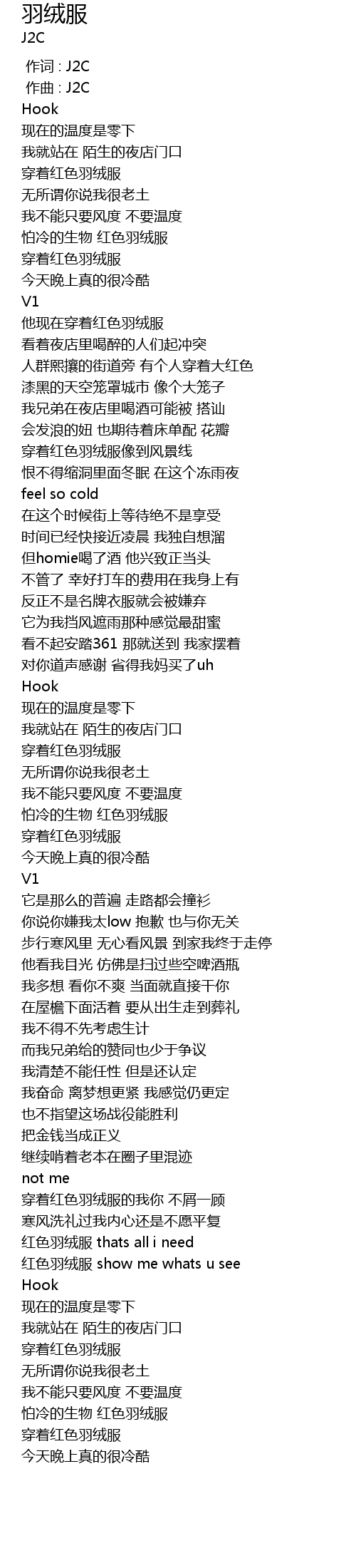 | [02:25.38] | 红色羽绒服 show me whats u see |