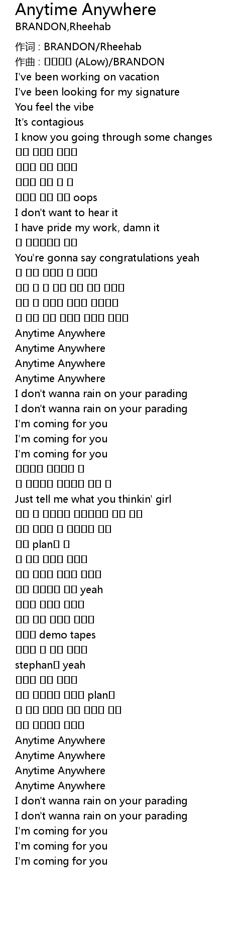 | 作词 : BRANDON/Rheehab | |