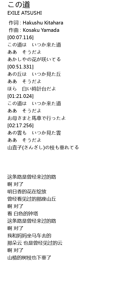 | [00:00.000] | 作词 : Hakushu Kitahara |
