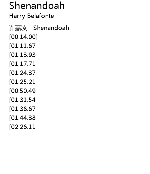 | [00:02.00] | 许嘉凌 - Shenandoah |