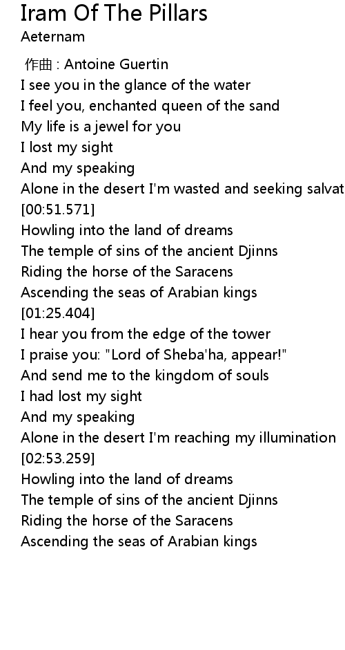 | [03:02.068] | The temple of sins of the ancient Djinns |