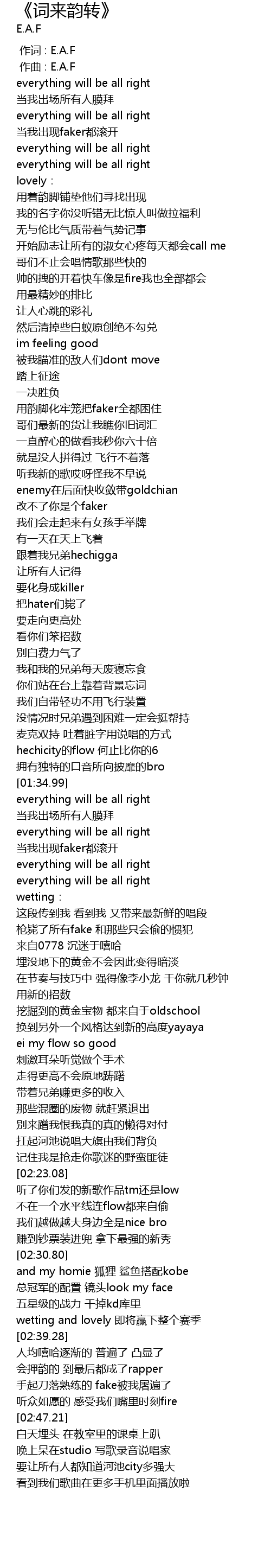 | [00:53.24] | 用韵脚化牢笼把faker全都困住 |
