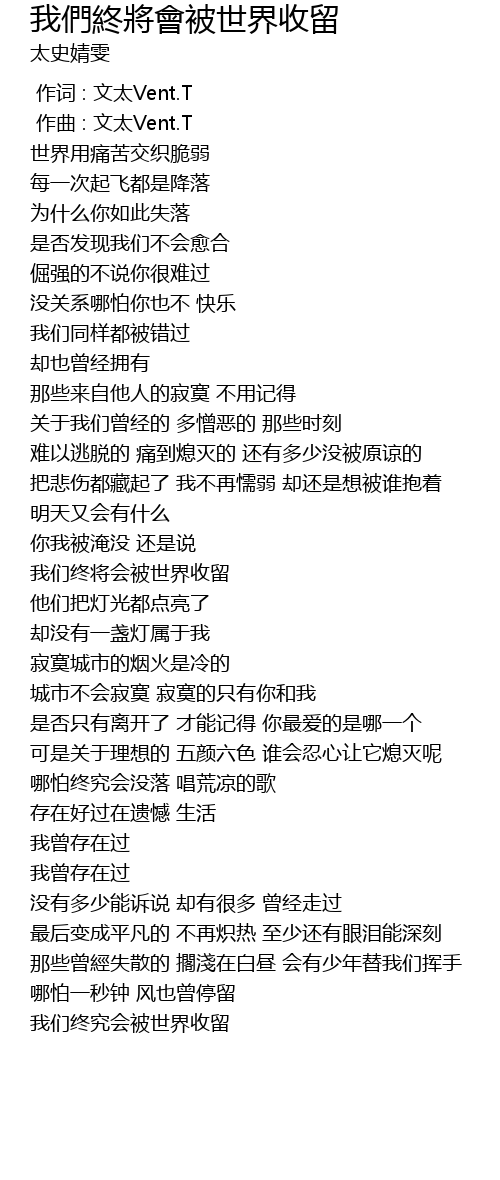 | [00:01.000] | zuò qǔ : wén tài Vent. T |