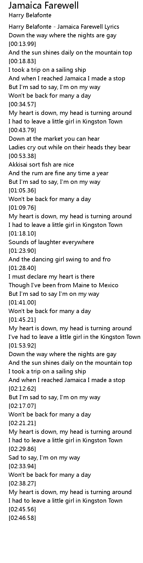 Harry Belafonte - Jamaica Farewell Lyrics |