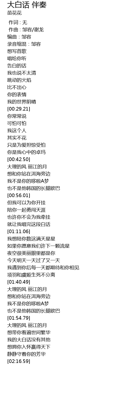| [02:01.63] | wǒ de dà bái huà méi yǒu qí tā |
