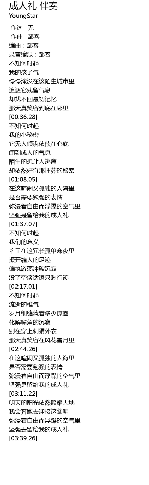 | [03:32.36] | 坚强去留给我的成人礼 |