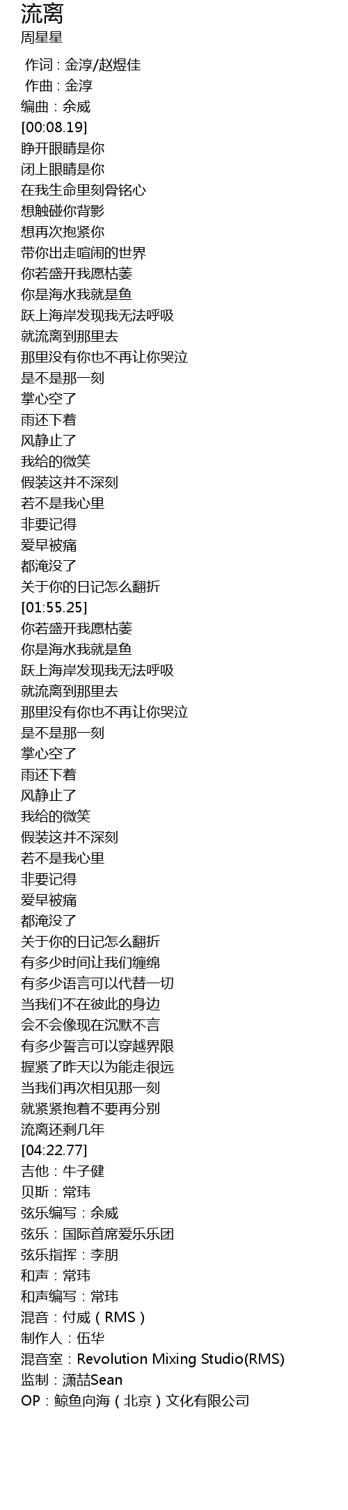 | [04:25.77] | xián yuè biān xiě: yú wēi |