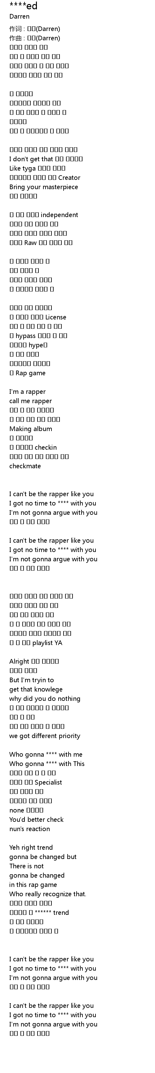 | 作词 : 대런(Darren) | |
