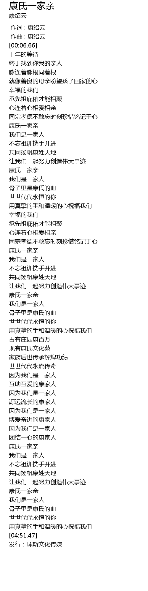 | [03:45.34] | yuán yuǎn liú cháng de kāng jiā rén |