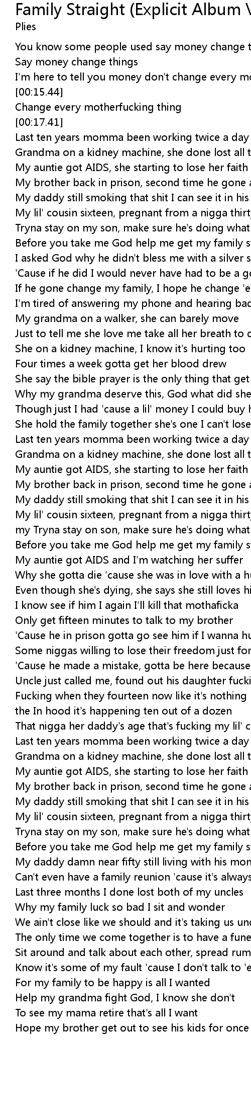 Family Straight (Explicit Album Version) Lyrics