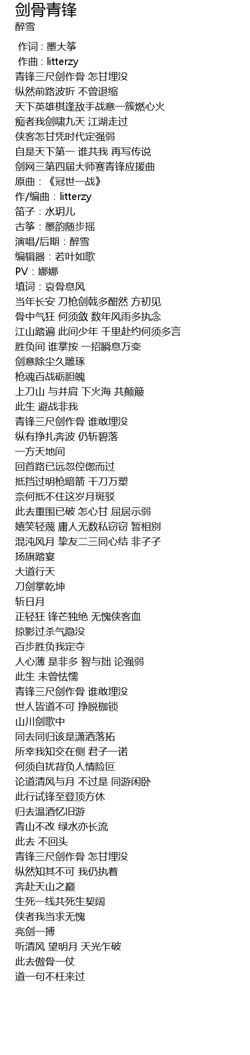| [02:39.17] | 青锋三尺剑作骨 谁敢埋没 |