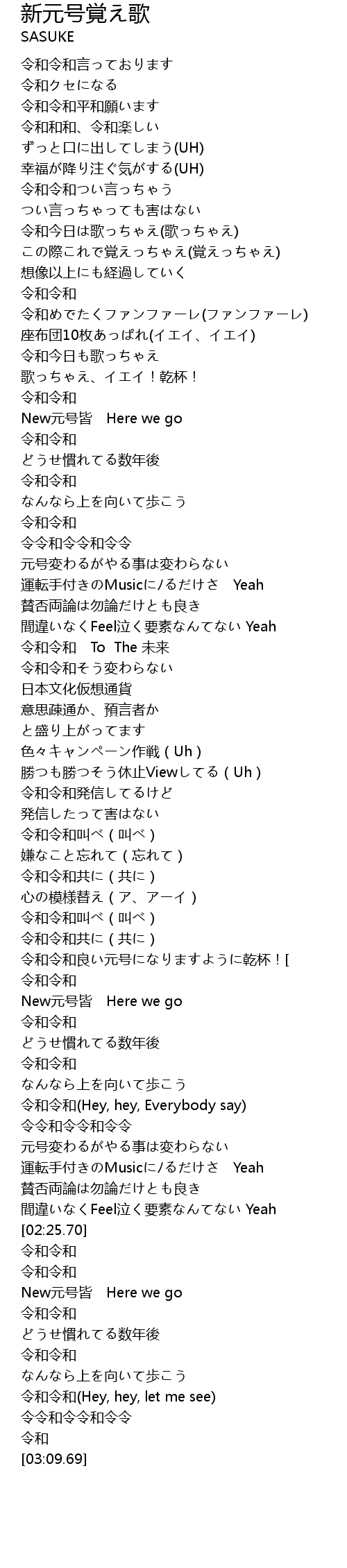 | [01:45.64] | 令和令和叫べ(叫べ) |