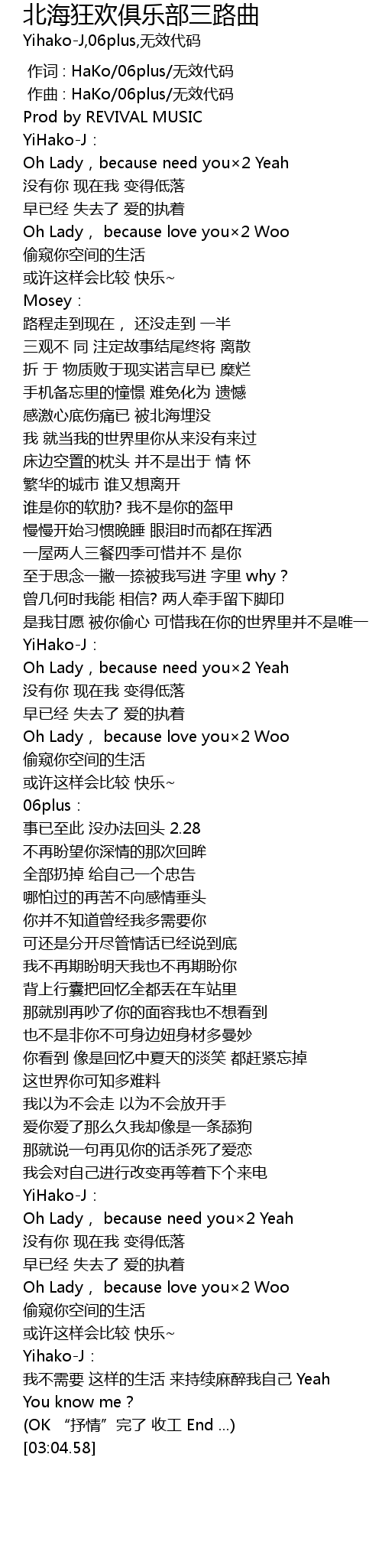 | [00:01.000] | zuò qǔ : HaKo 06plus wú xiào dài mǎ |