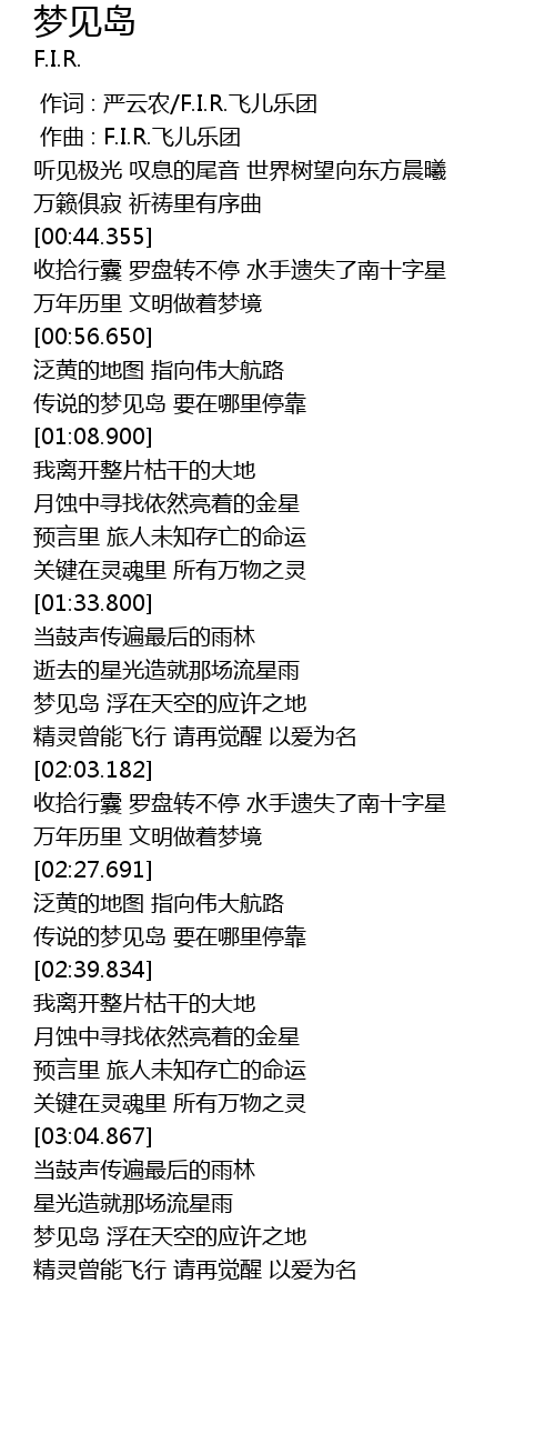 | [03:29.997] | 梦见岛 浮在天空的应许之地 |