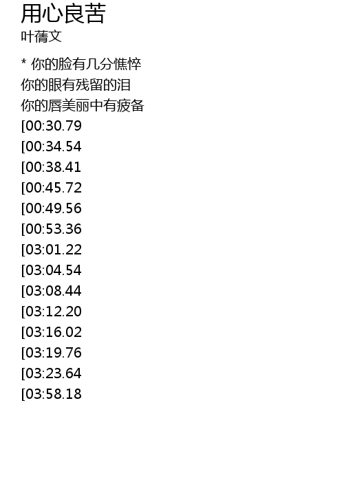 | [00:15.61] | * 你的脸有几分憔悴 |
