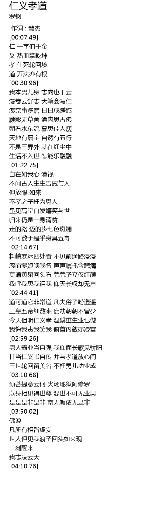 | [02:51.96] | 今天但明仁义孝 涅槃重生业也傲 |