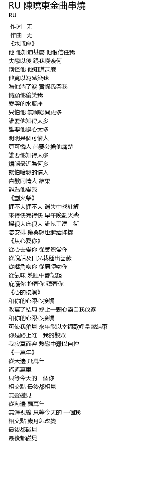 | [00:41.287] | 為他淌了淚 實際我哭我 |