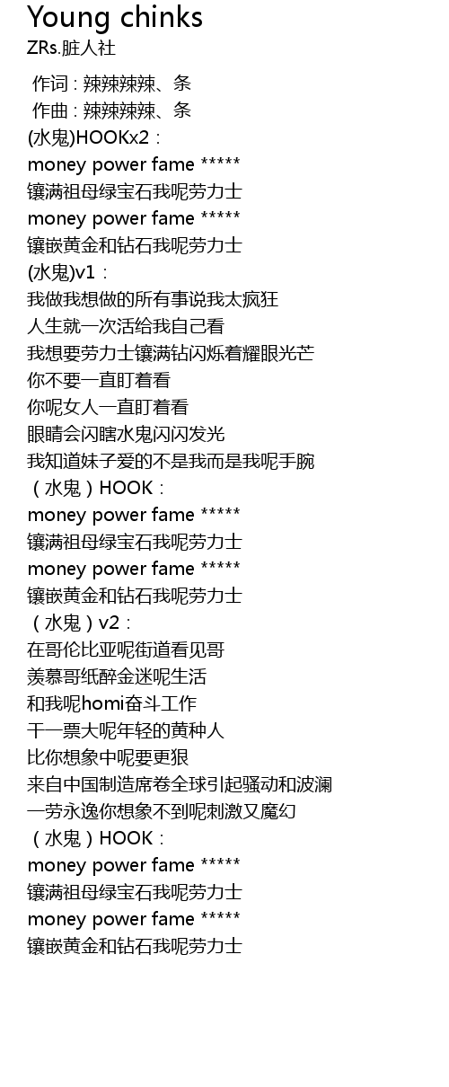| [00:57.406] | 我想要劳力士镶满钻闪烁着耀眼光芒 |